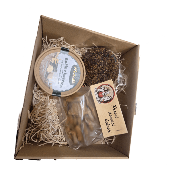 Svaki proizvod u paketu izrađen je od prirodnih sastojaka, bez aditiva, zadržavajući autentičan domaći okus i nutritivne vrijednosti. Pirovi keksići i smokvenjak unose tradicionalni mediteranski šarm, dok bučine koštice u bijeloj čokoladi s kavom dodaju suvremenu gurmansku notu.
